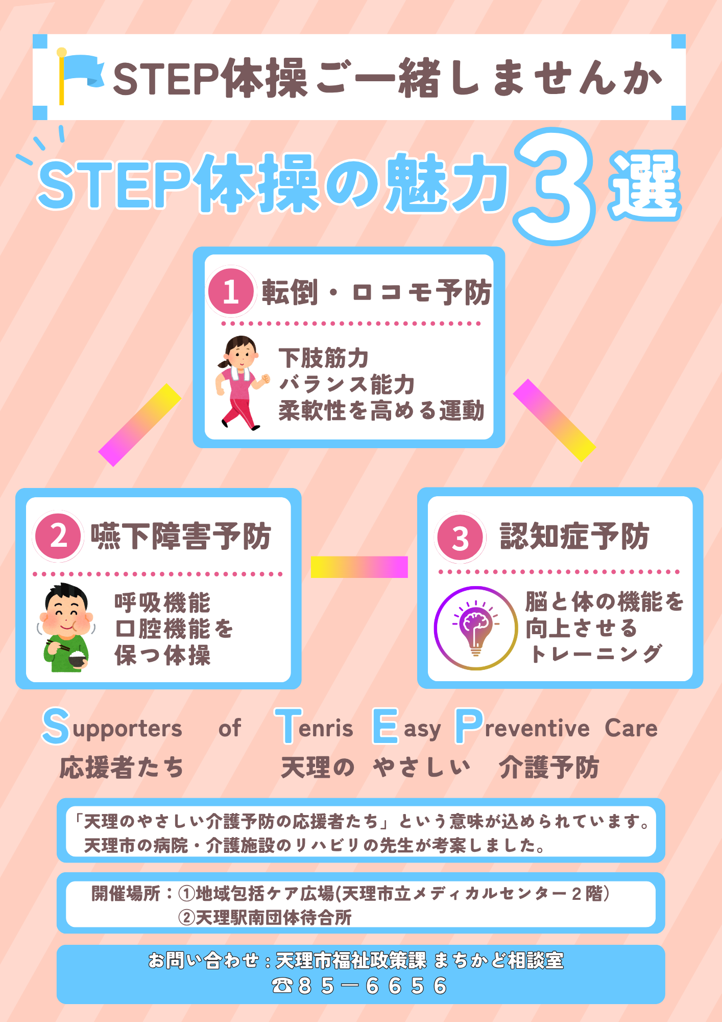 「STEP」の意味『天理市版 気軽な介護予防の応援者』