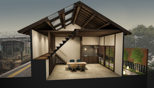 その後は、当該地域内の古民家を改装し、順次ホテル等として利用する(5~10棟)。また、JR柳本駅舎にあるレストランをカフェ、天理トレイルセンター内の洋食Katsuiをメインダイニングとして位置付け、沿線一体で接客を行う。
