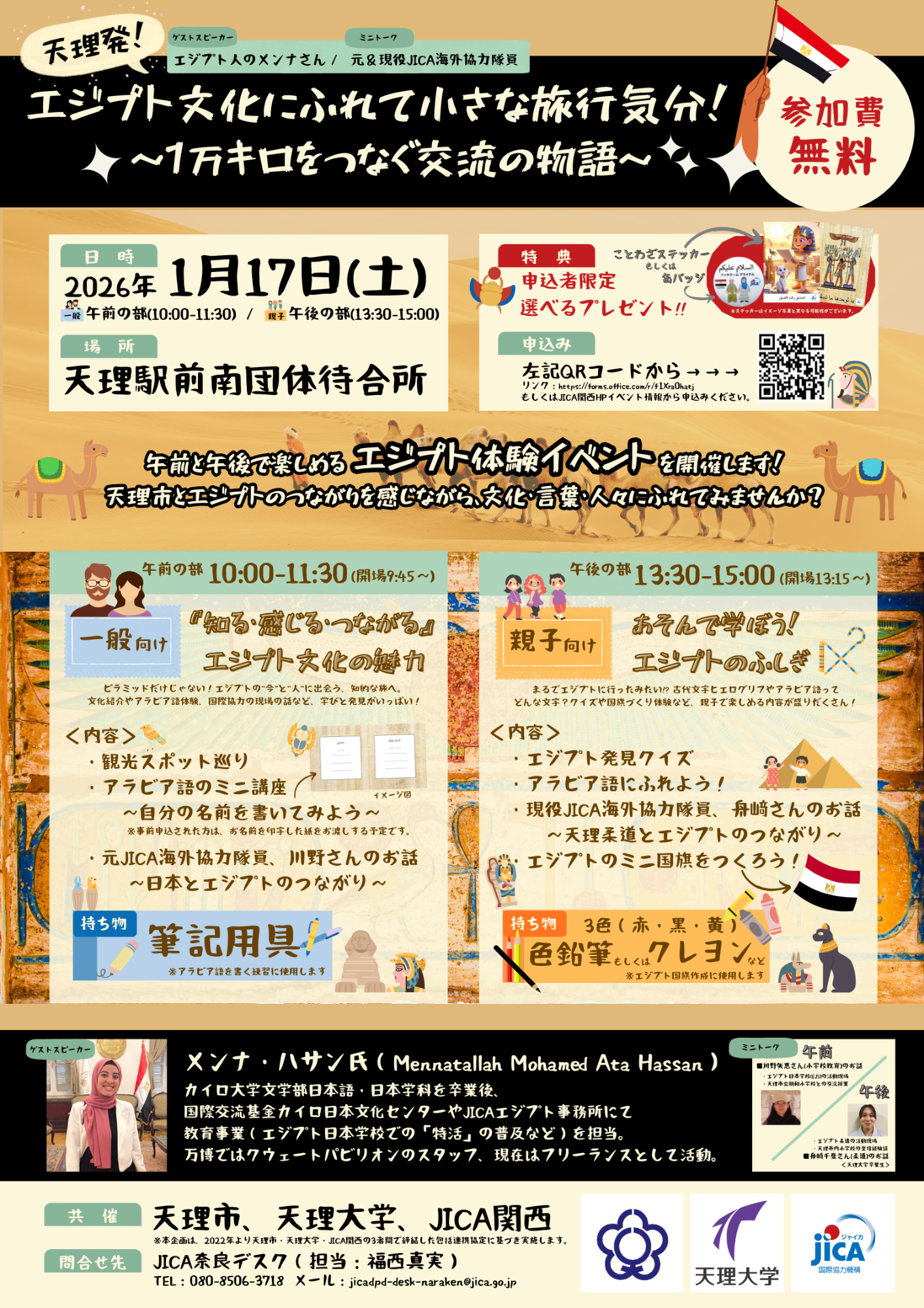 天理市とエジプトのつながりを感じながら、文化・言葉・人々にふれてみませんか?